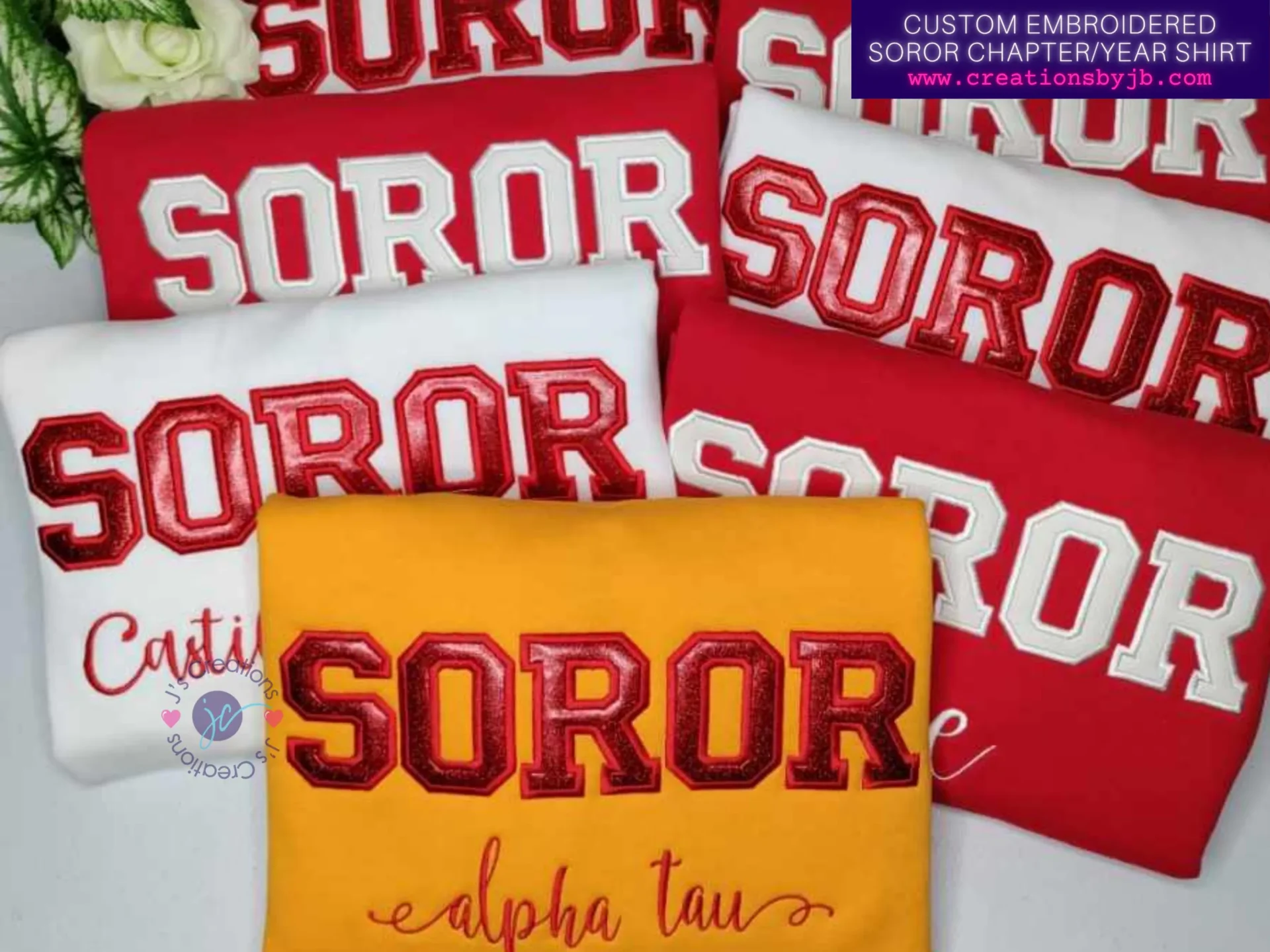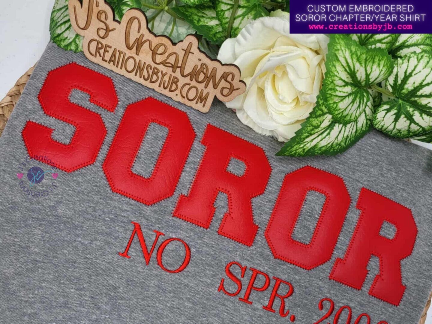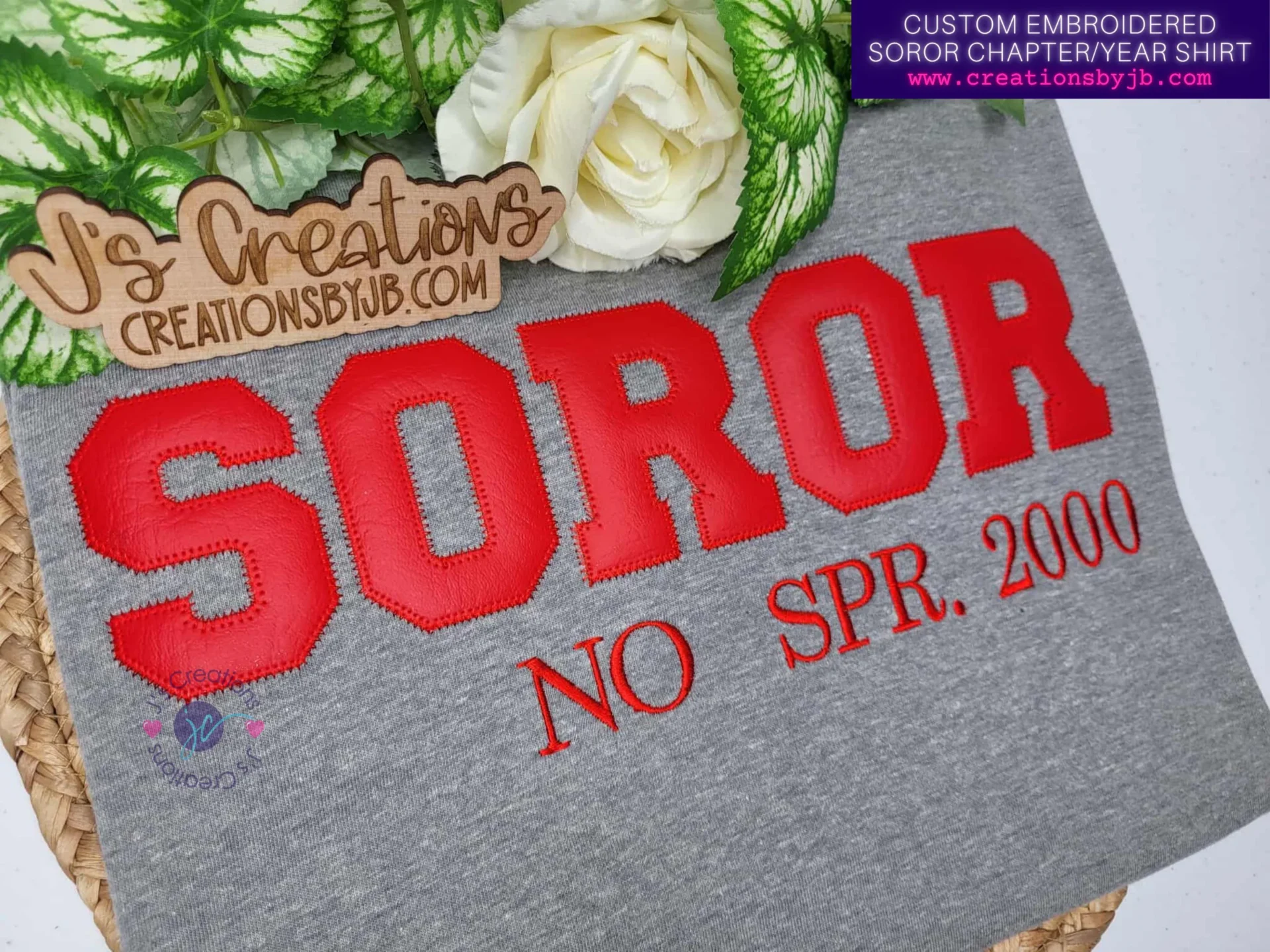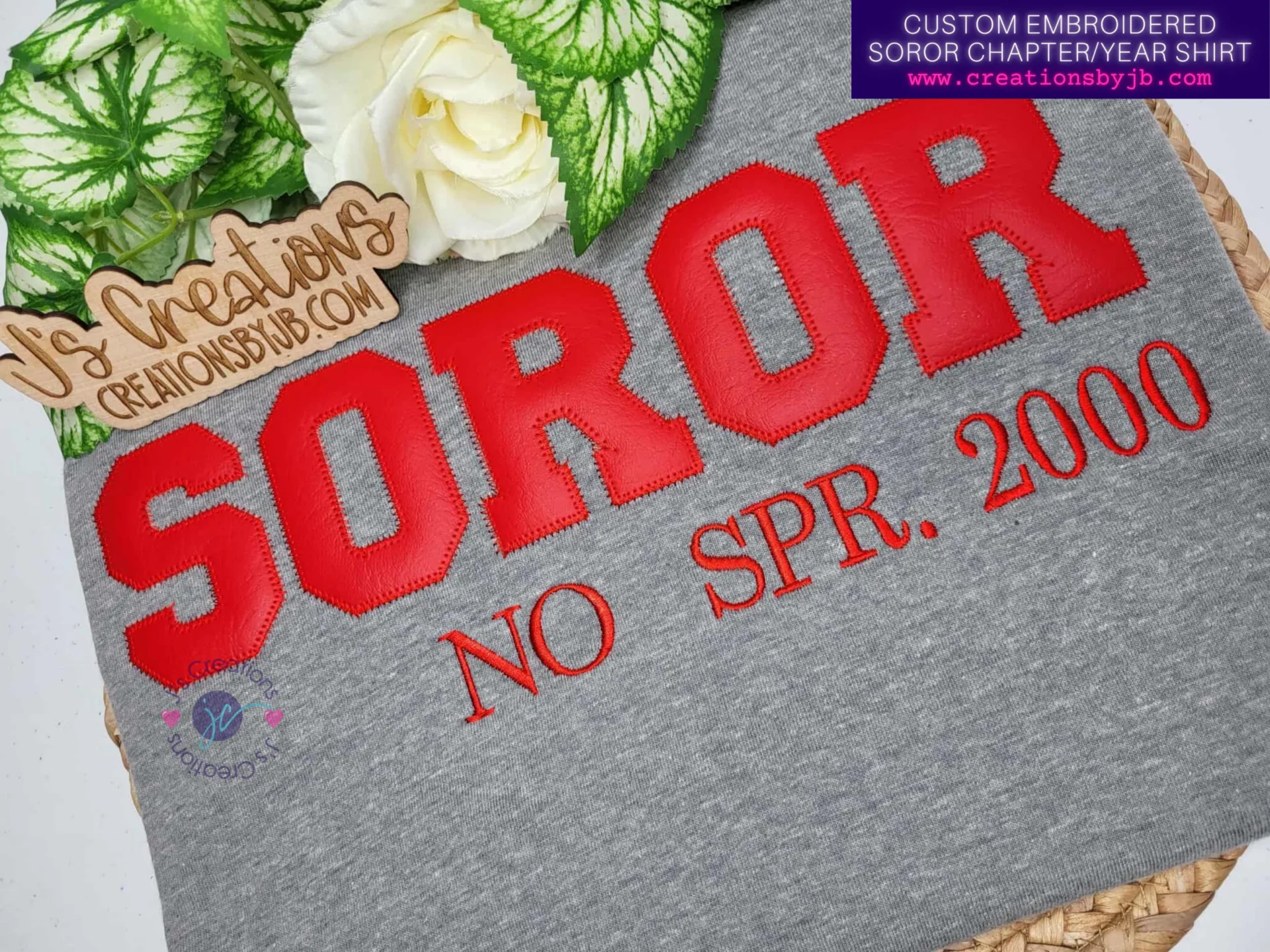 This custom embroidered Soror t-shirt is designed exclusively for members of Delta Sigma Theta Sorority, Inc. who want to represent their sisterhood with timeless, elevated embroidery. Featuring bold appliqué varsity-style “SOROR” lettering and personalized chapter and initiation date embroidery, this shirt honors the journey, the bond, and the pride that comes with being a Soror.