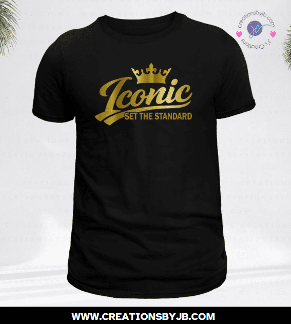 Make a statement without saying a word in the Iconic: Set The Standard graphic t-shirt. Designed for leaders, trendsetters, and those who walk with confidence, this bold typography design features a sleek crown detail and modern script styling that elevates any outfit.